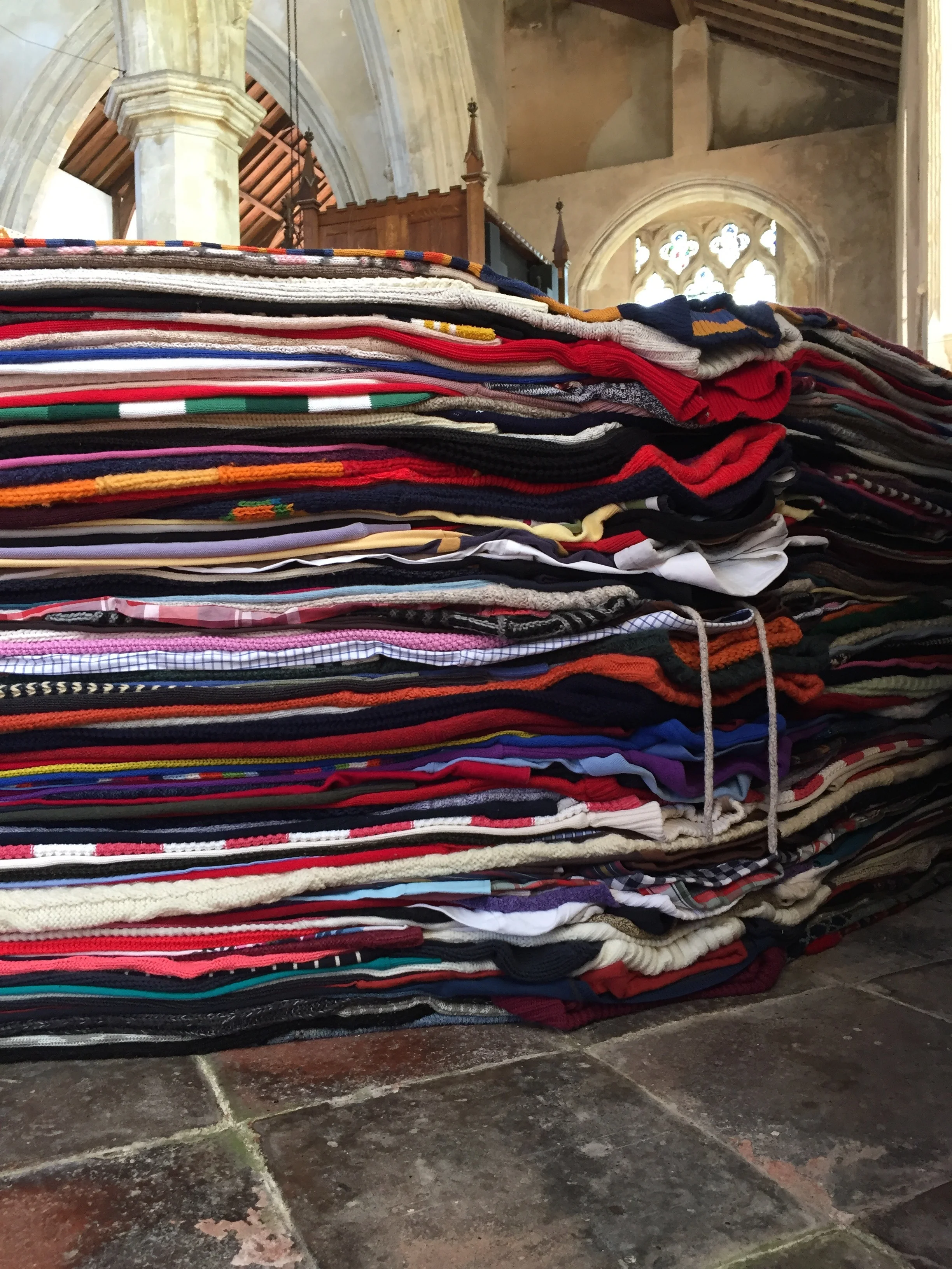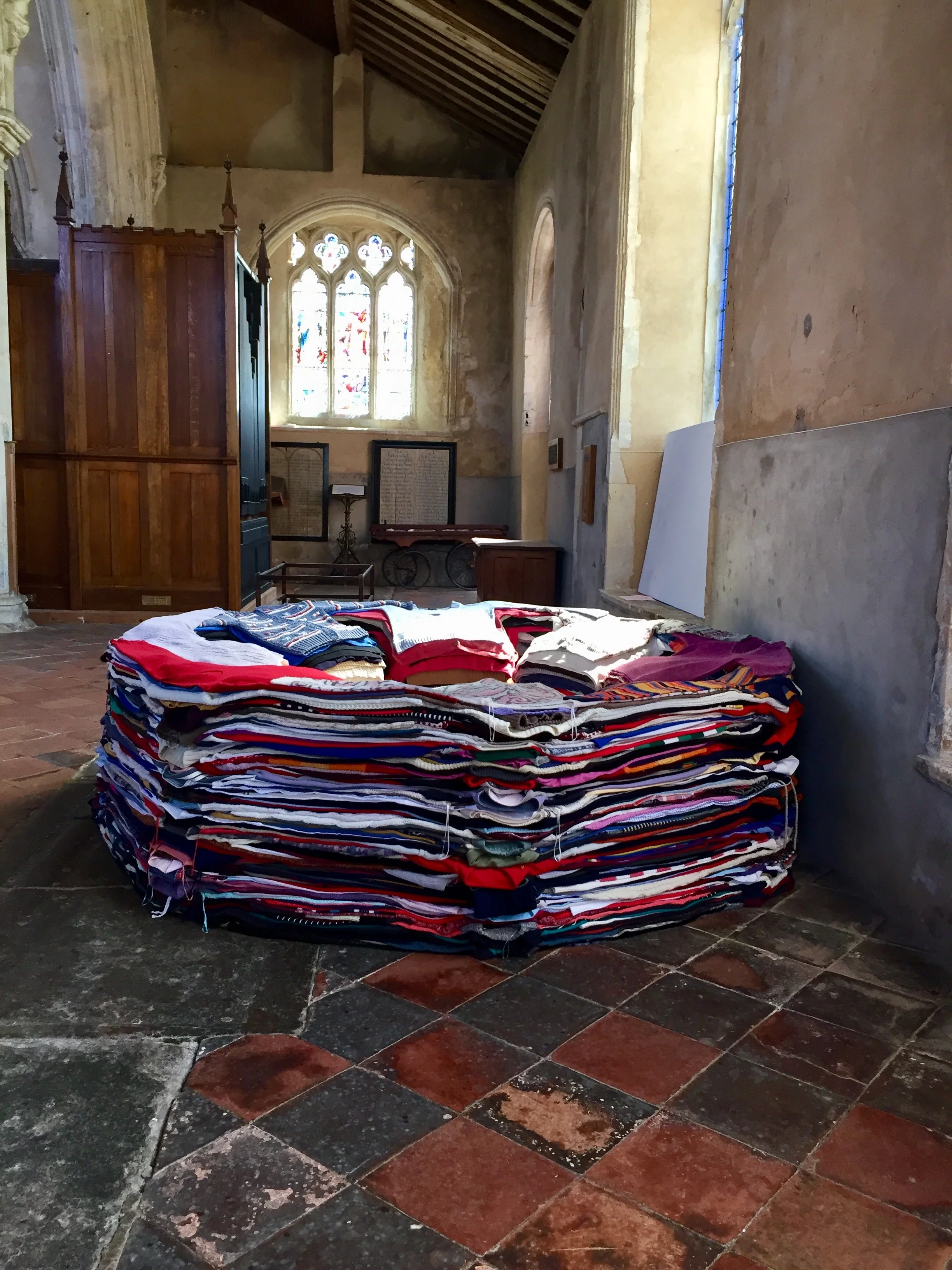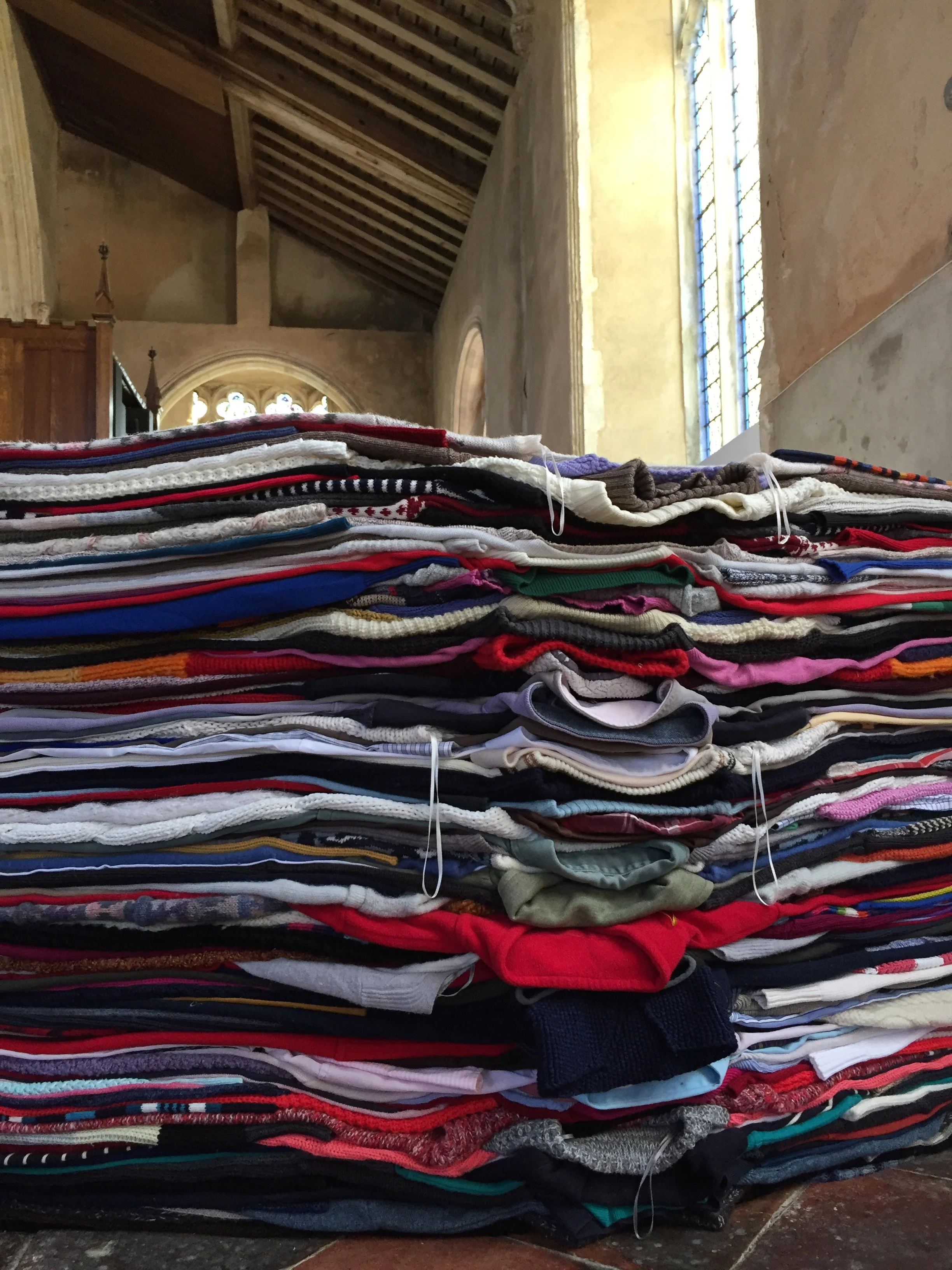 Installation sculpture at St Margaret’s Church, Holt Road, Cley, Norfolk, NR25 7TT, comprising of approximately 3000 used garments.