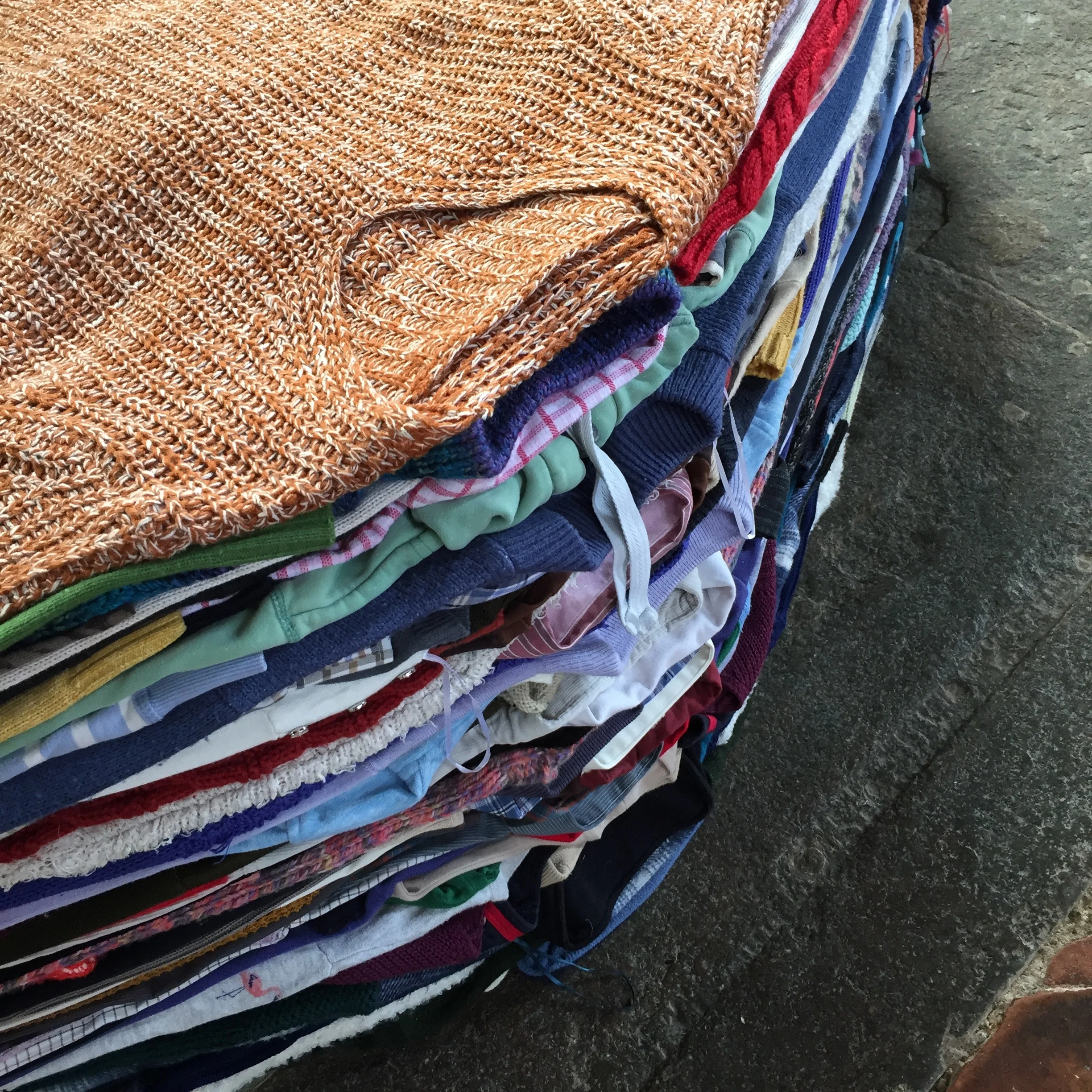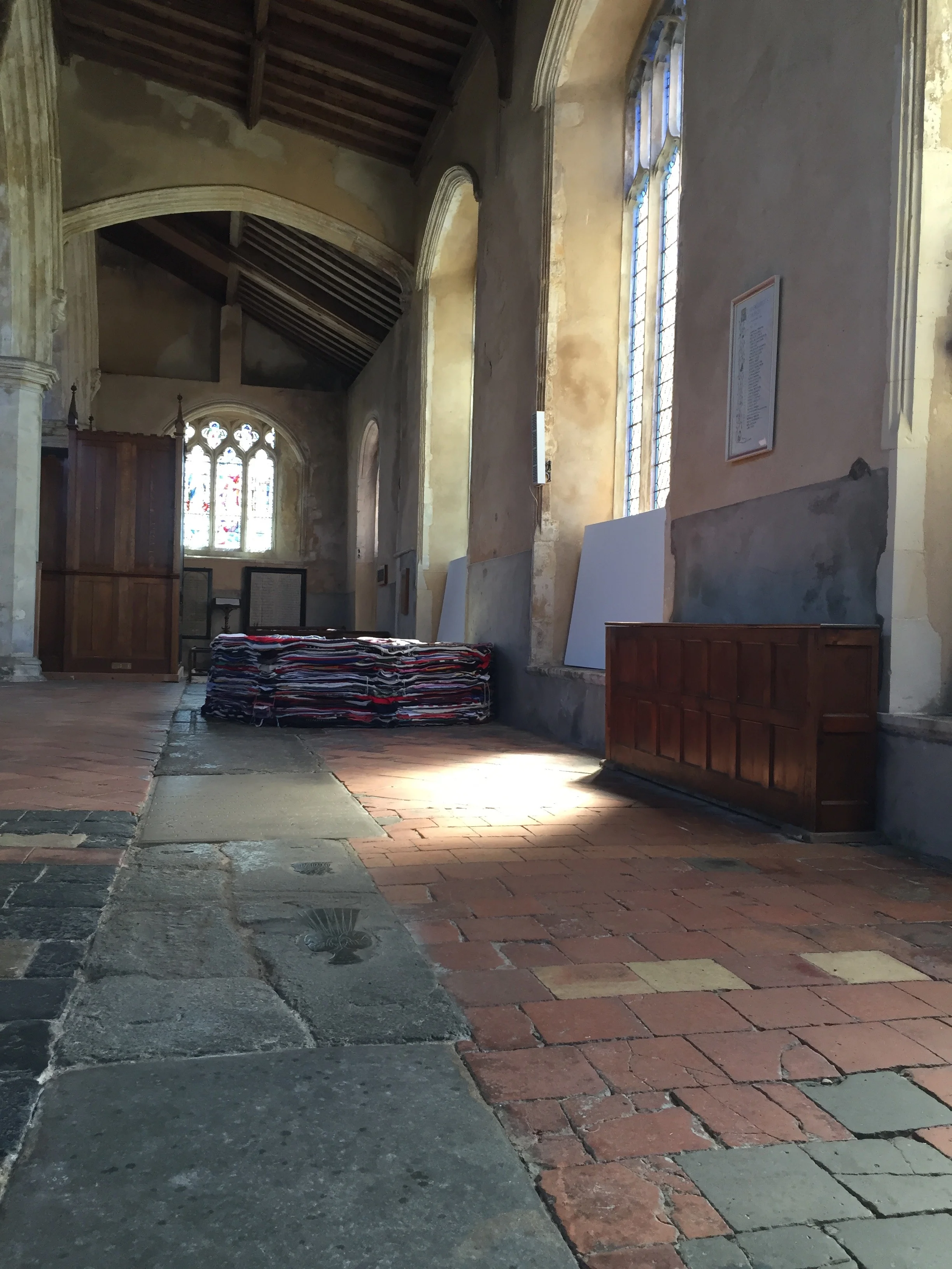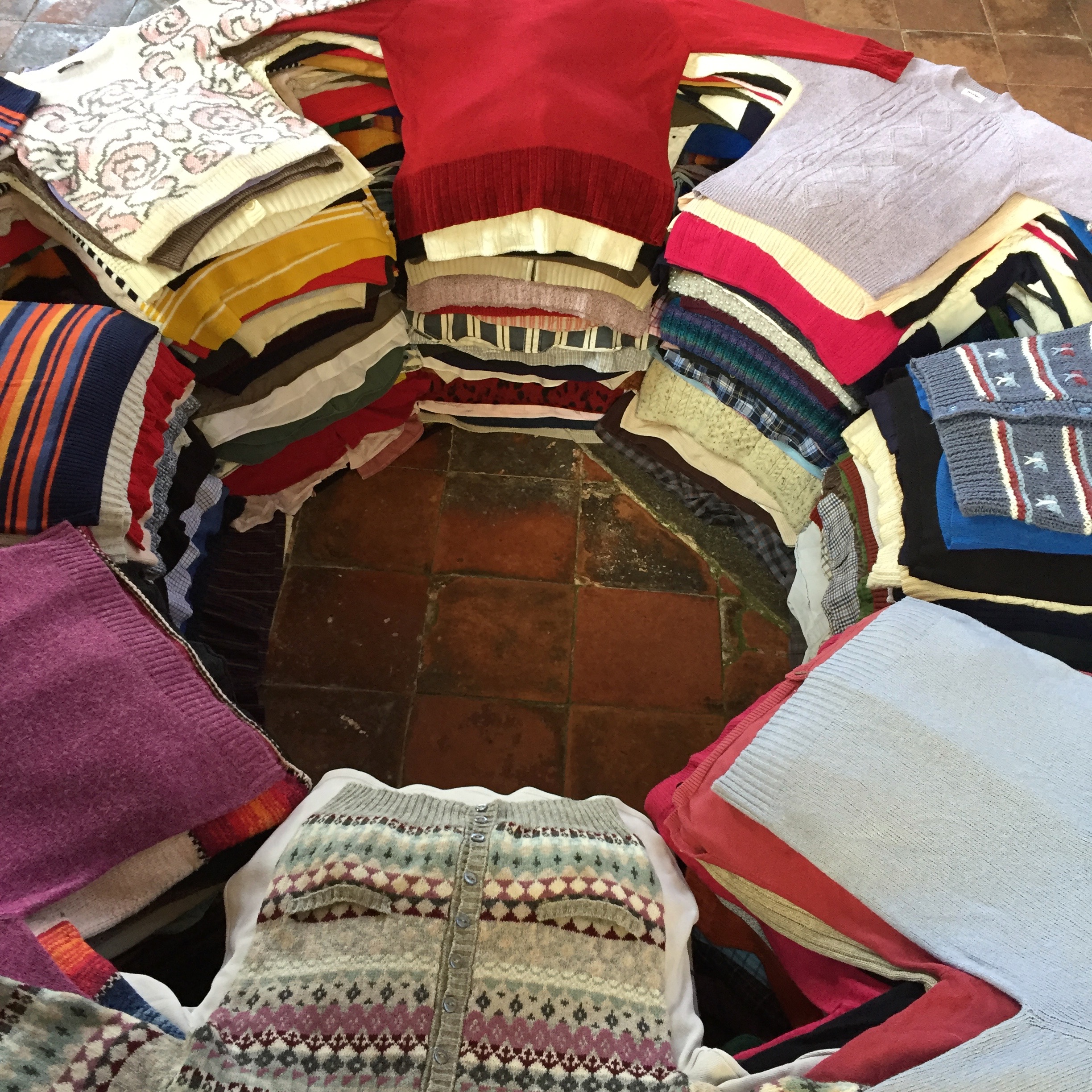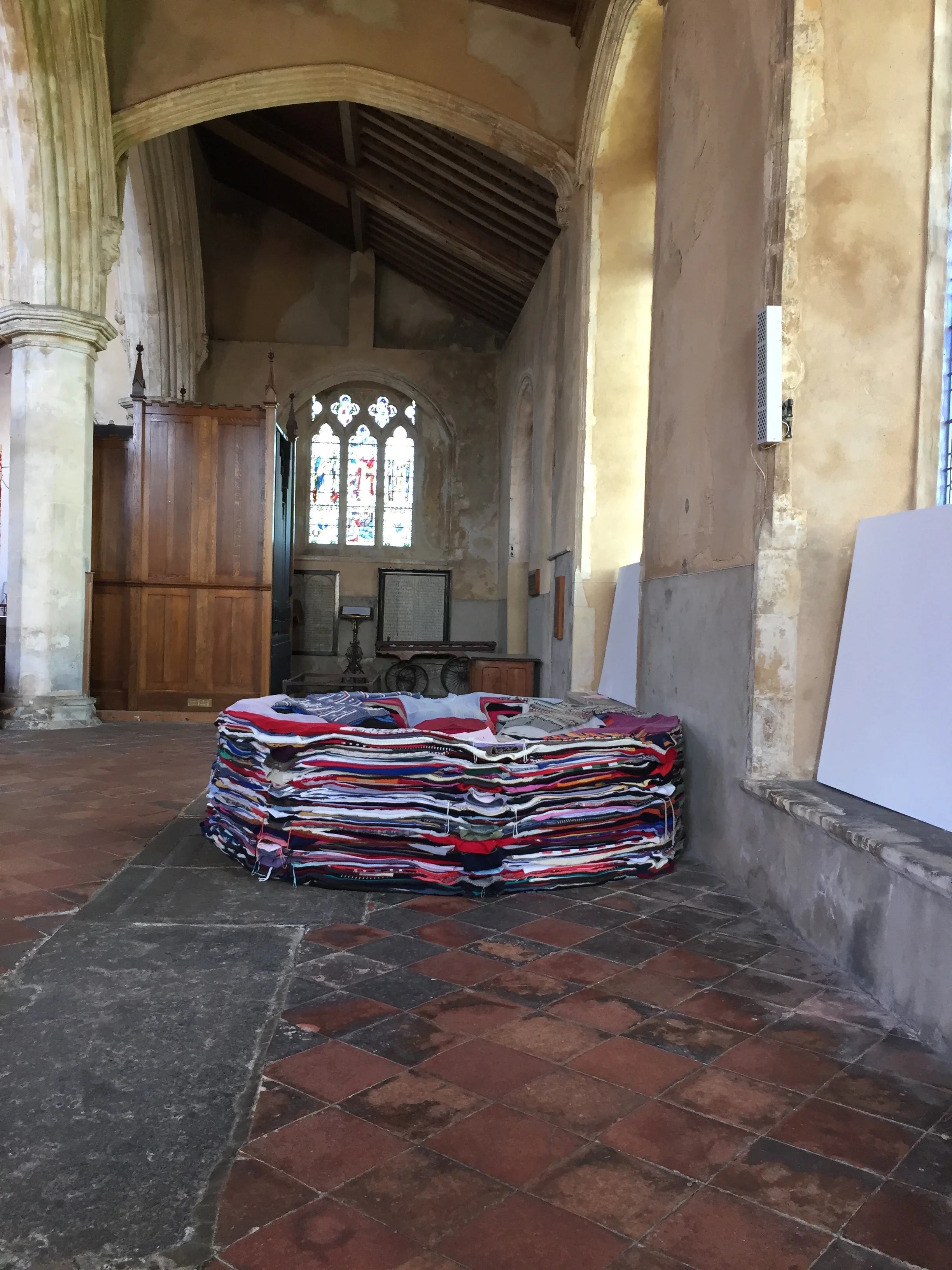 Installation sculpture at St Margaret’s Church, Holt Road, Cley, Norfolk, NR25 7TT, comprising of approximately 3000 used garments.
