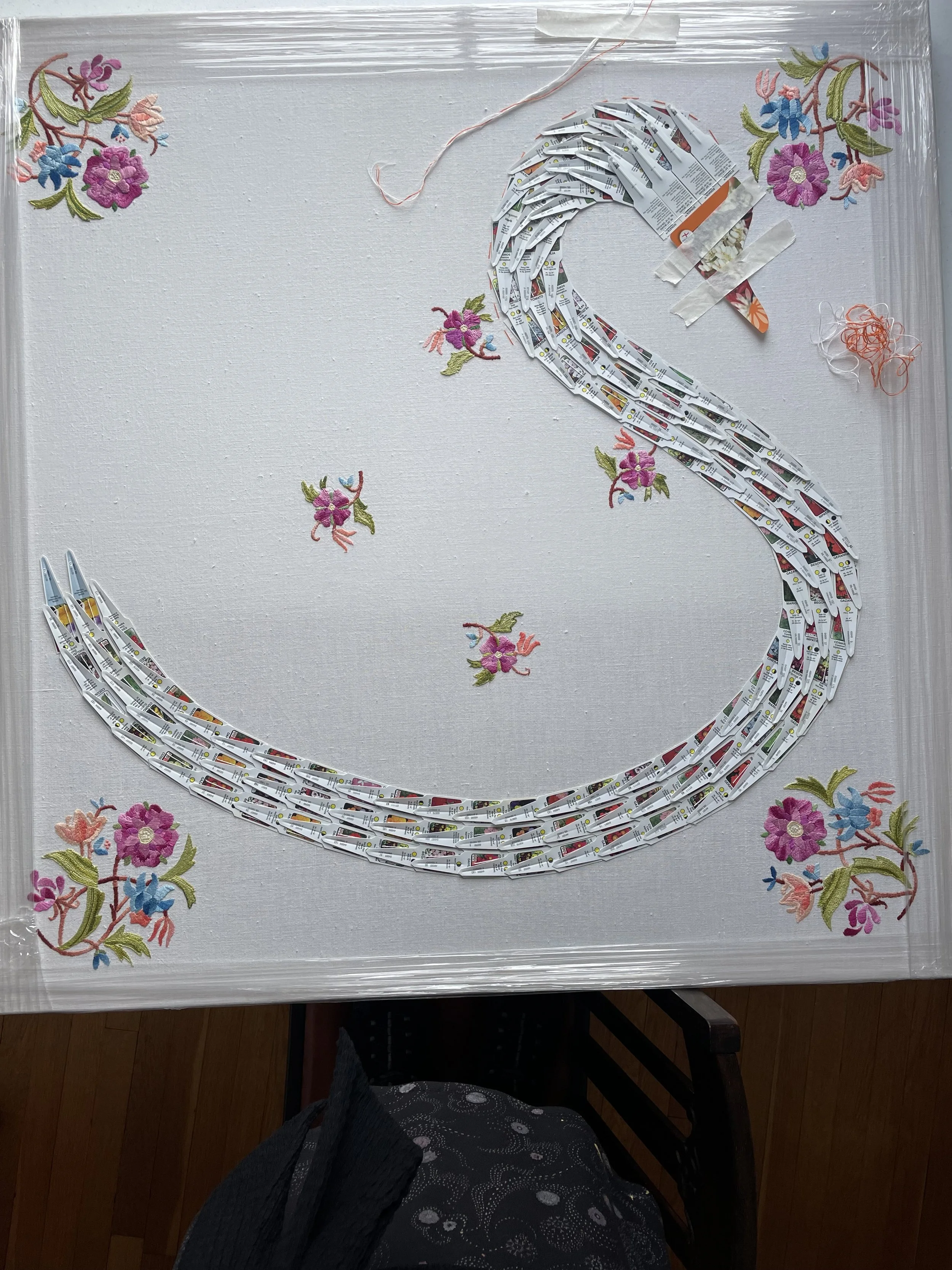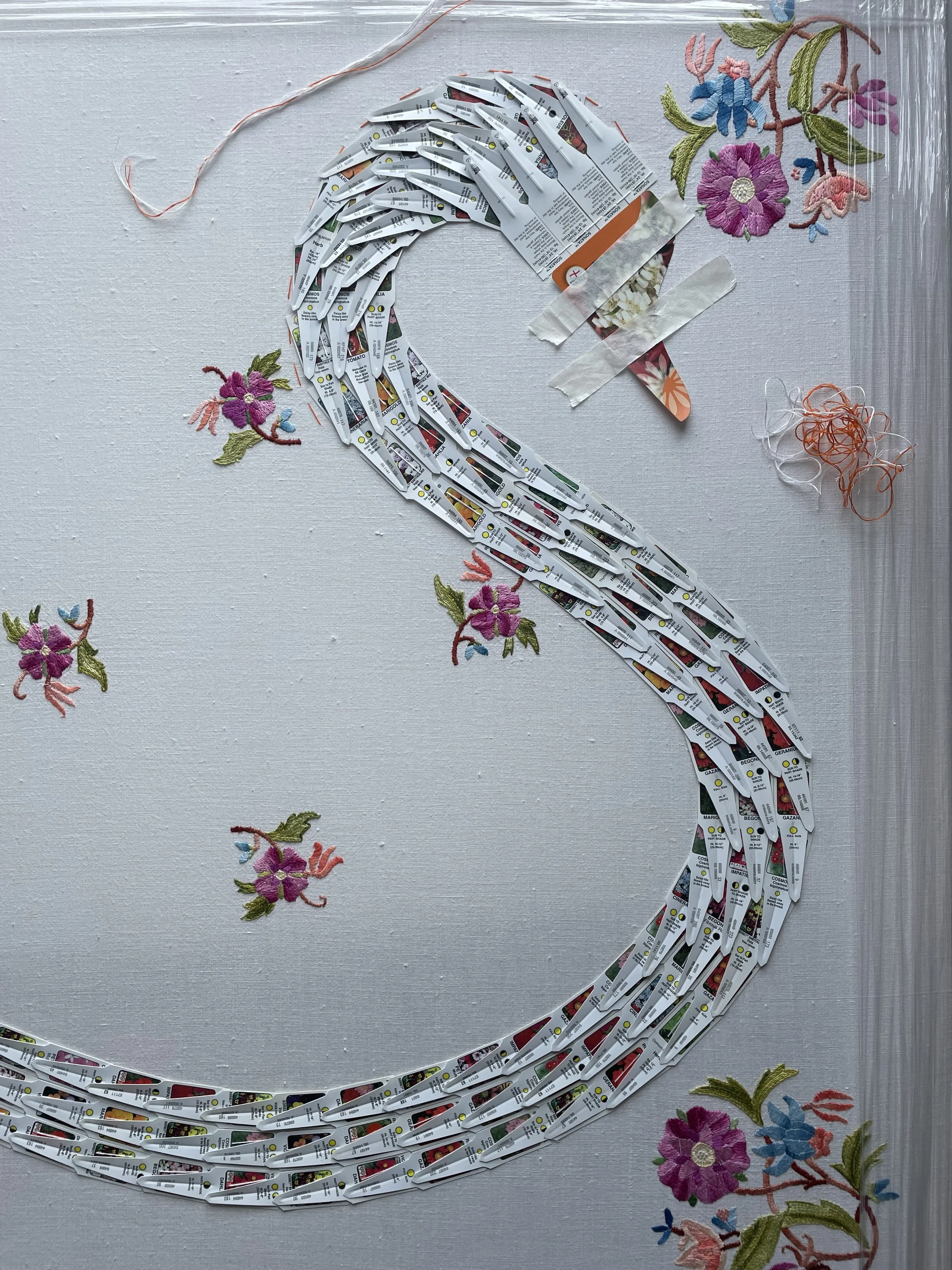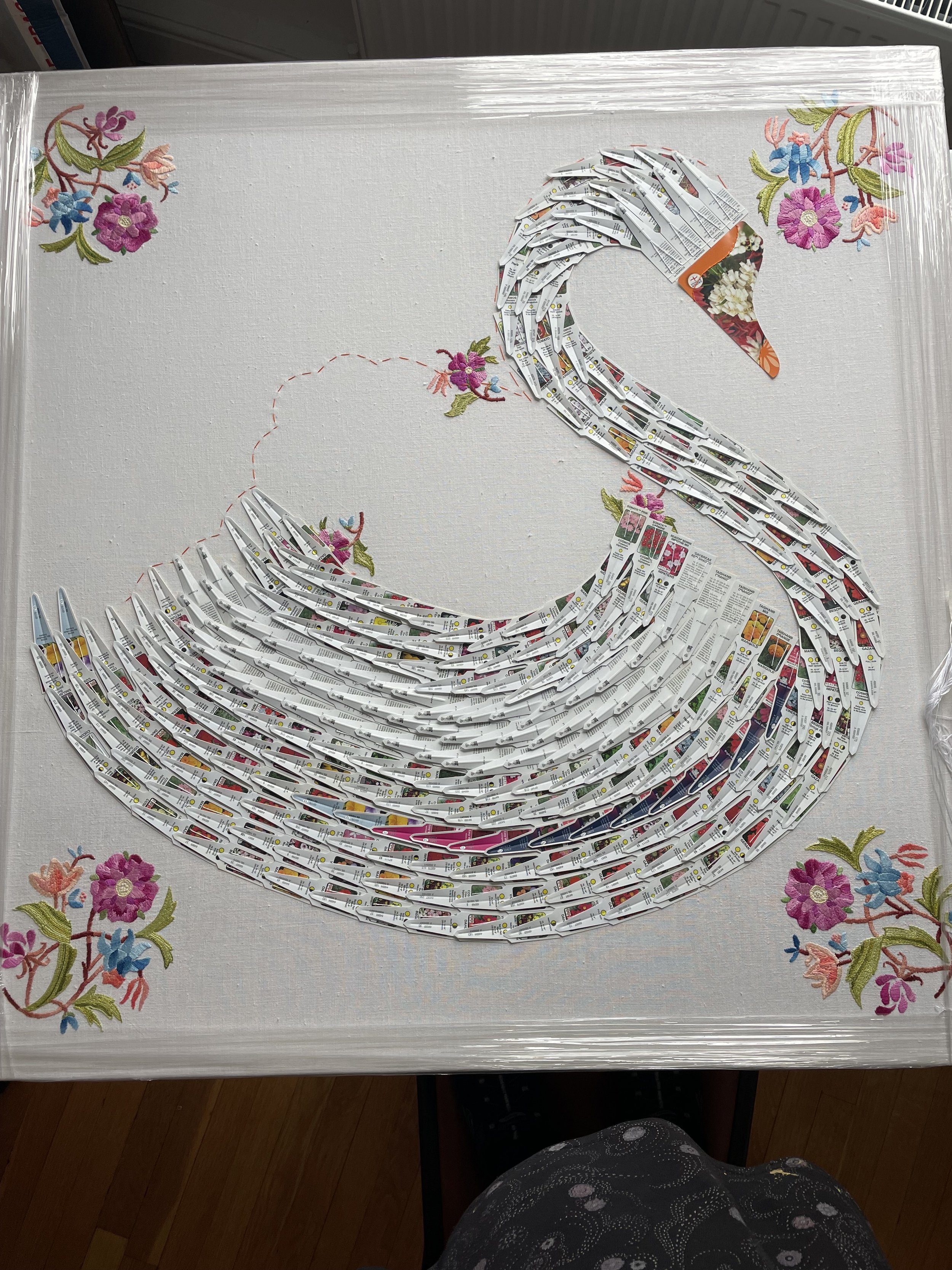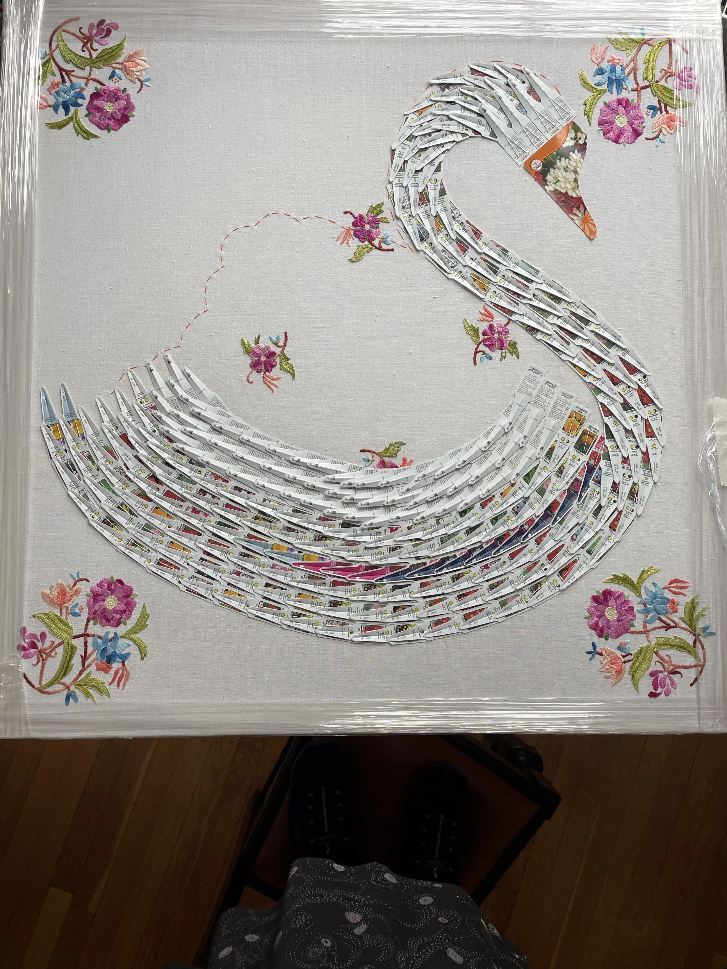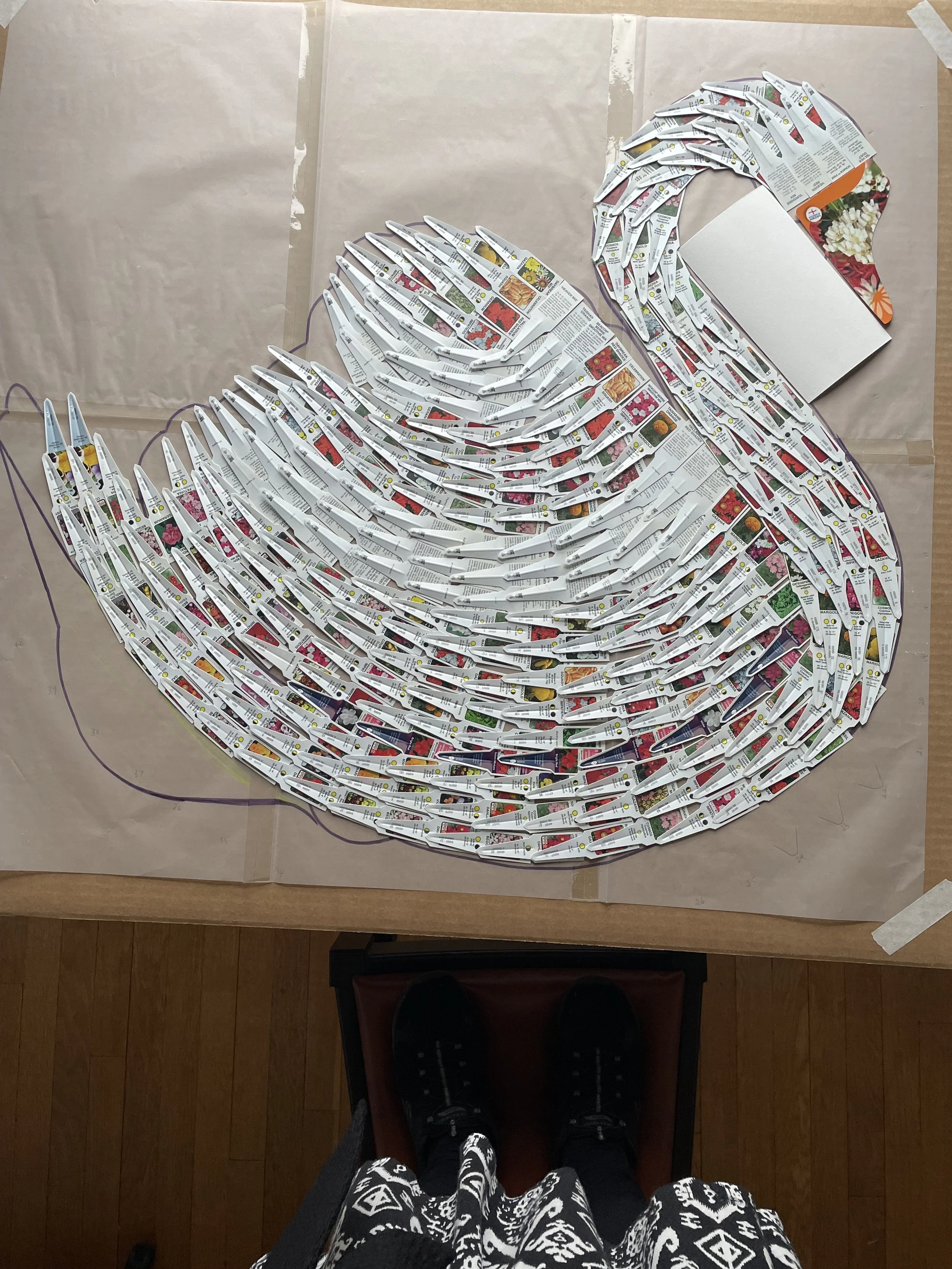 An experiment to explore 100s of used plant labels assembled in the image of a majestic swan, a subject for some reason that I keep returning to.