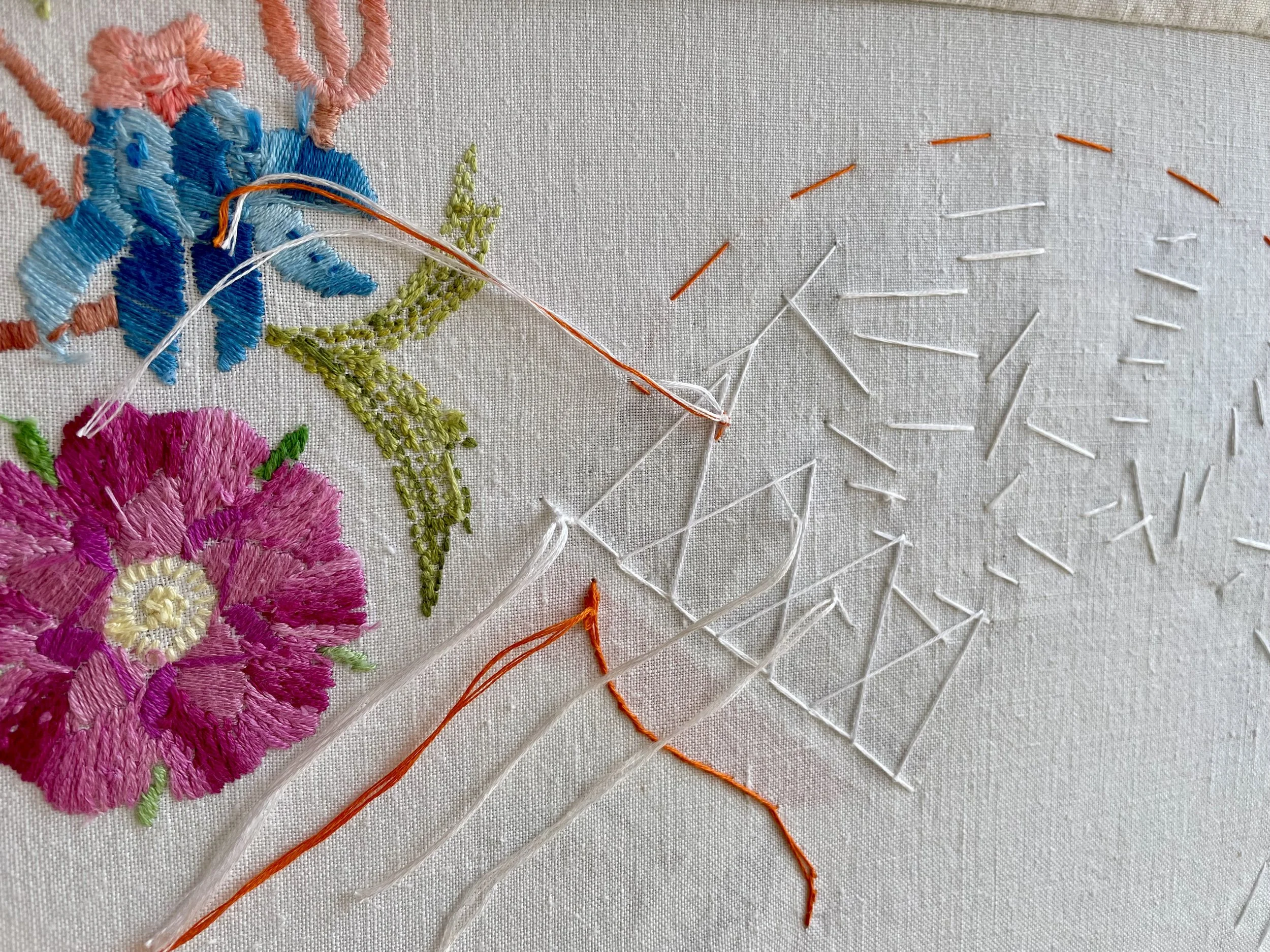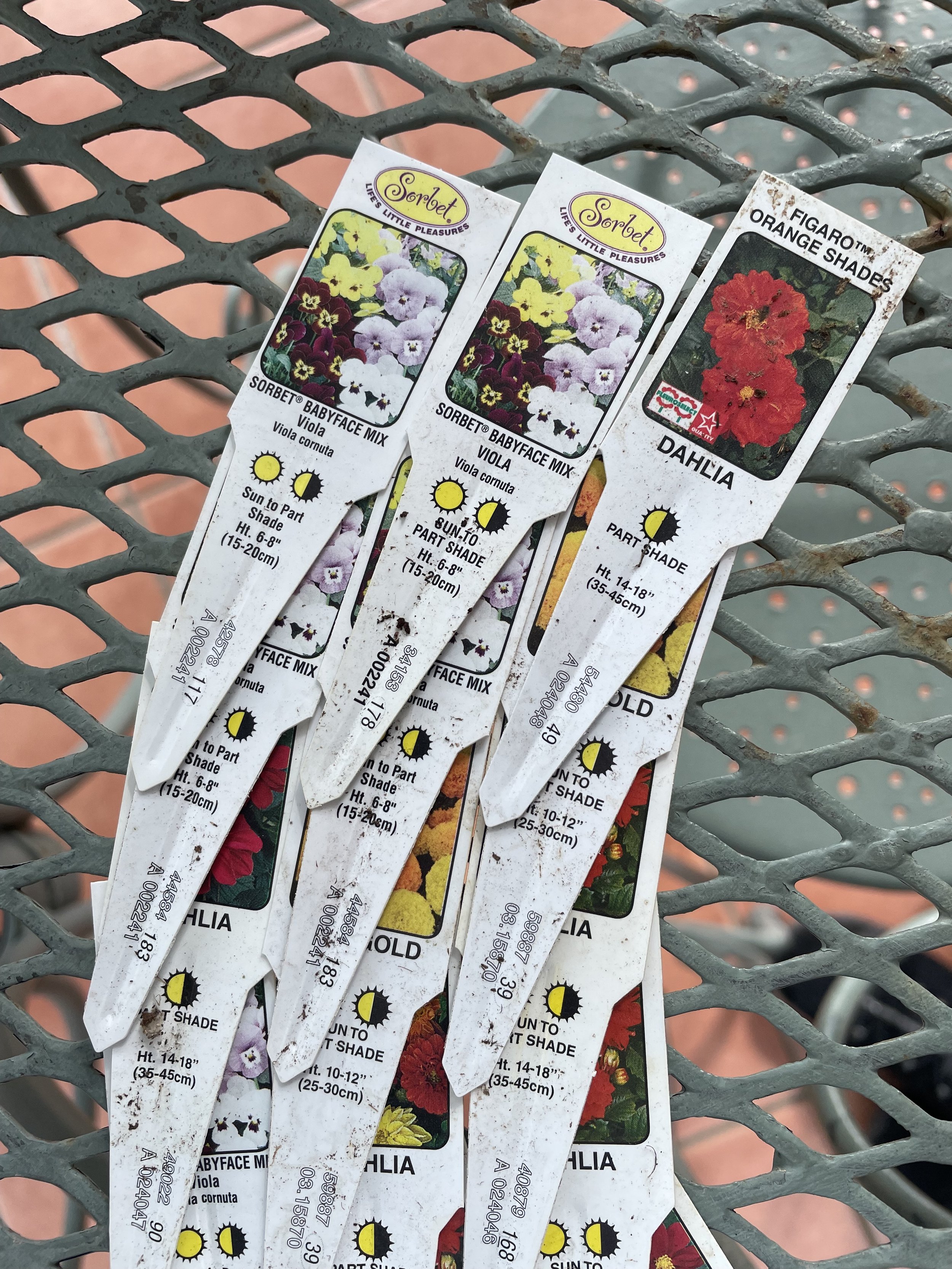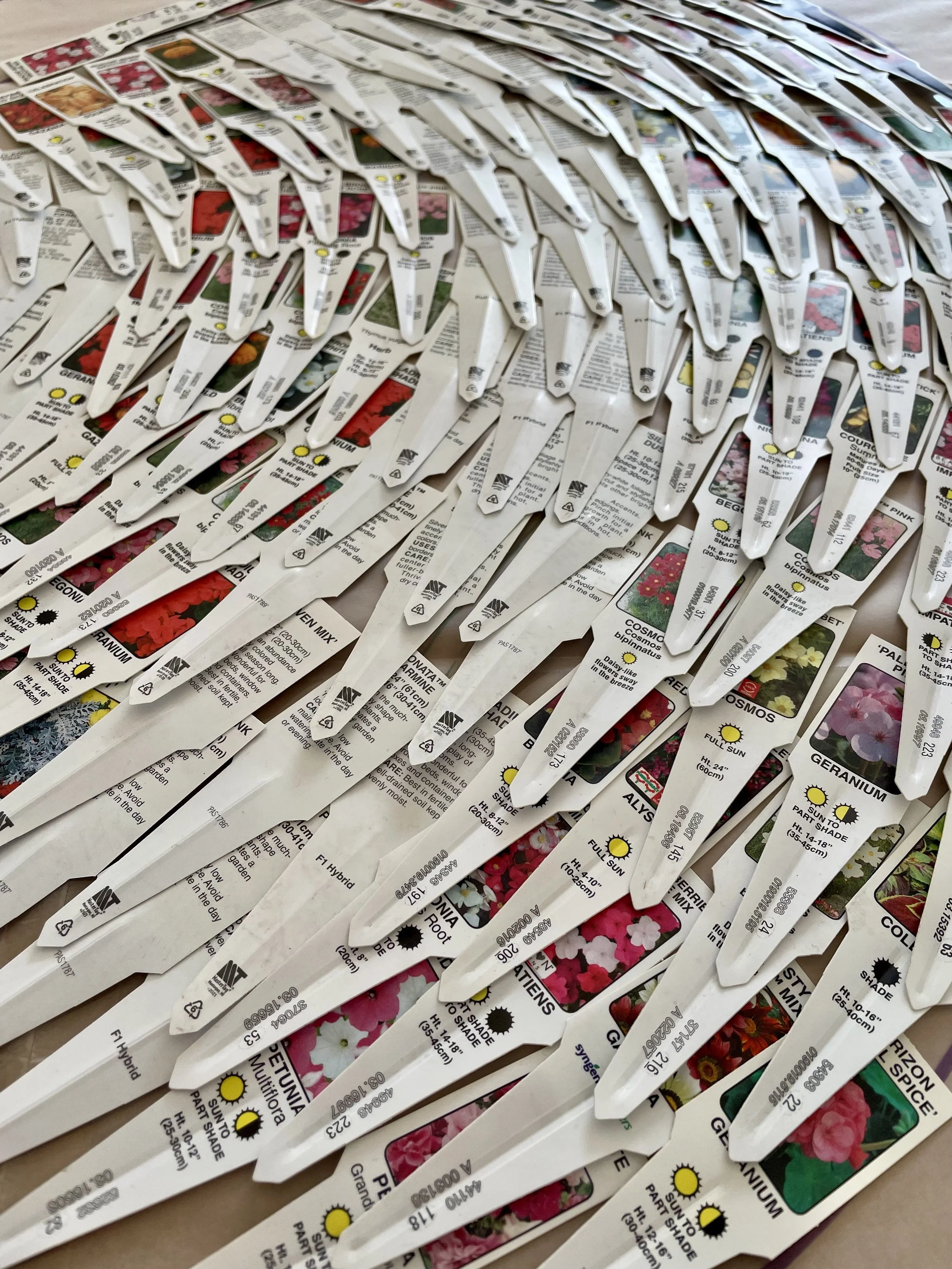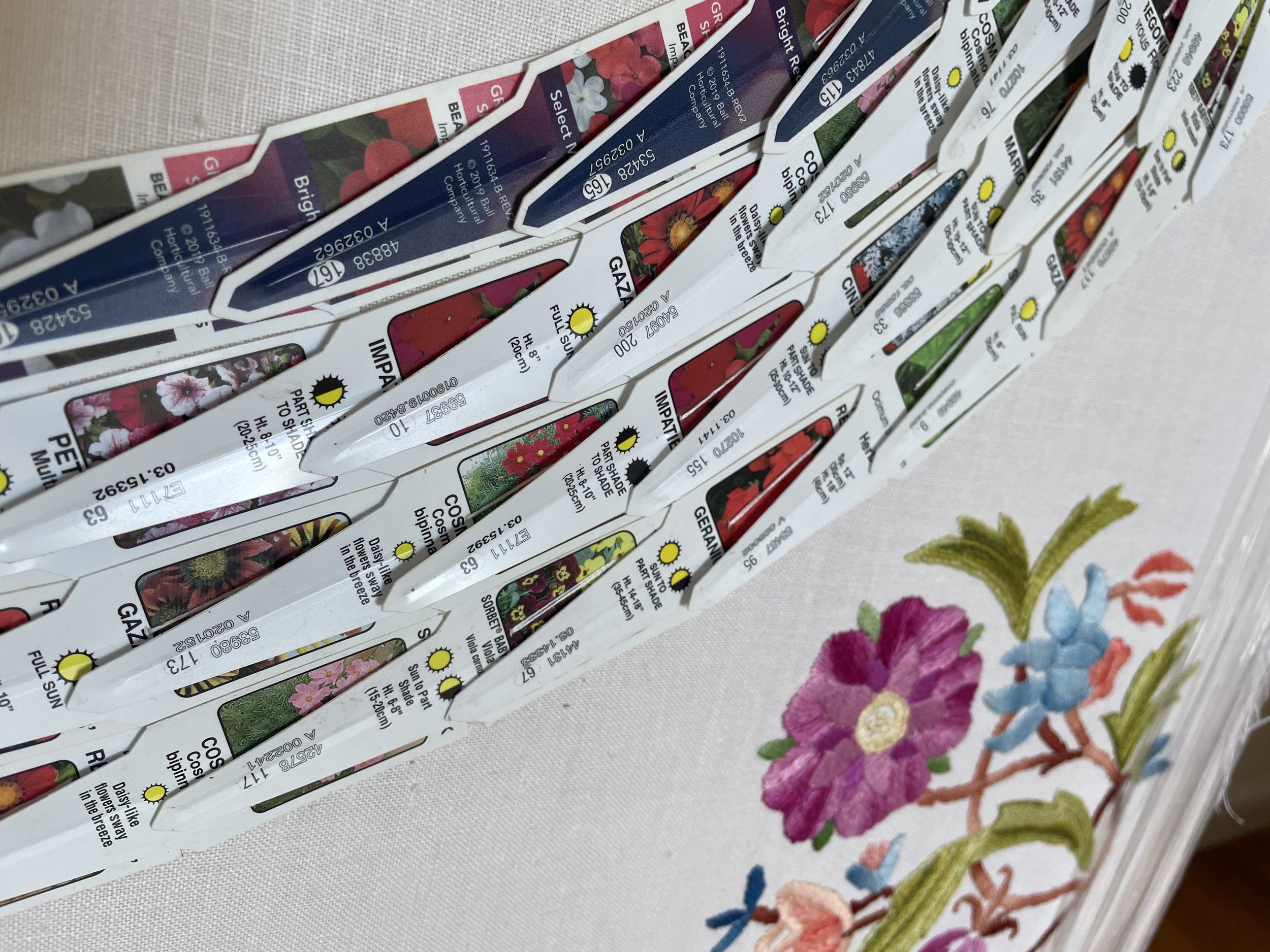 556 Plant Labels on Vintage Embroidered Tablecloth
