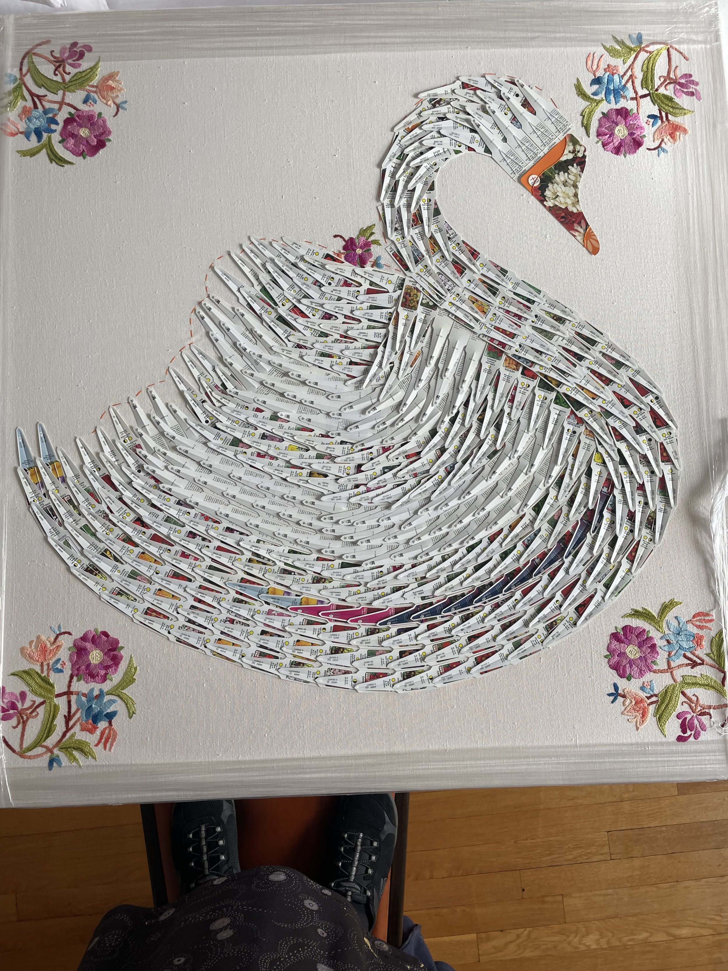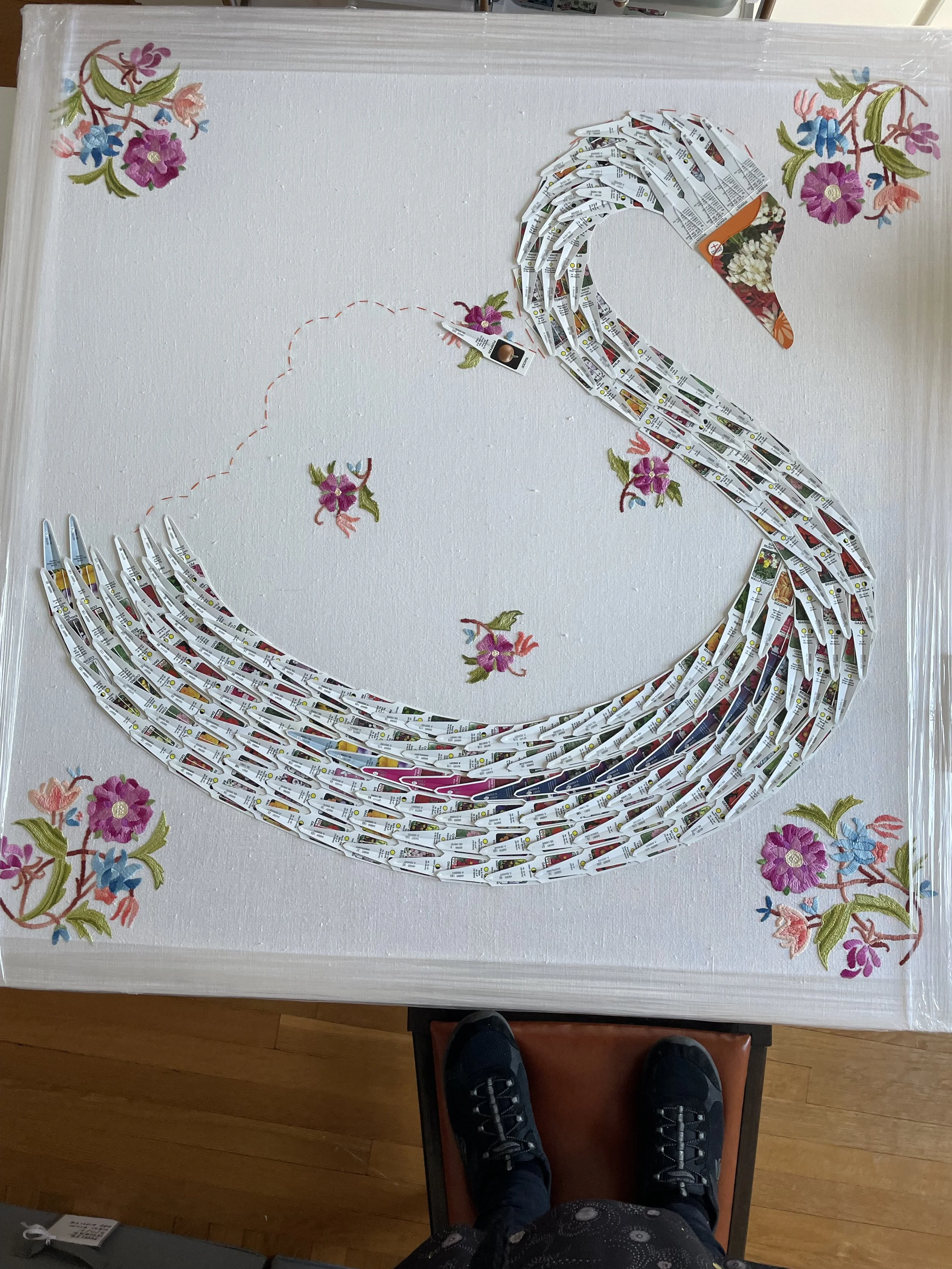 I am discovering that everything is interconnected and that in the plant world, flowers and leaves are the feathers, both are beautiful and delicate, both need care and water to grow. Plants are also a food source for foraging swans, and architecturally swans use plant vegetation to build their massive elevated nests… more interconnectedness.