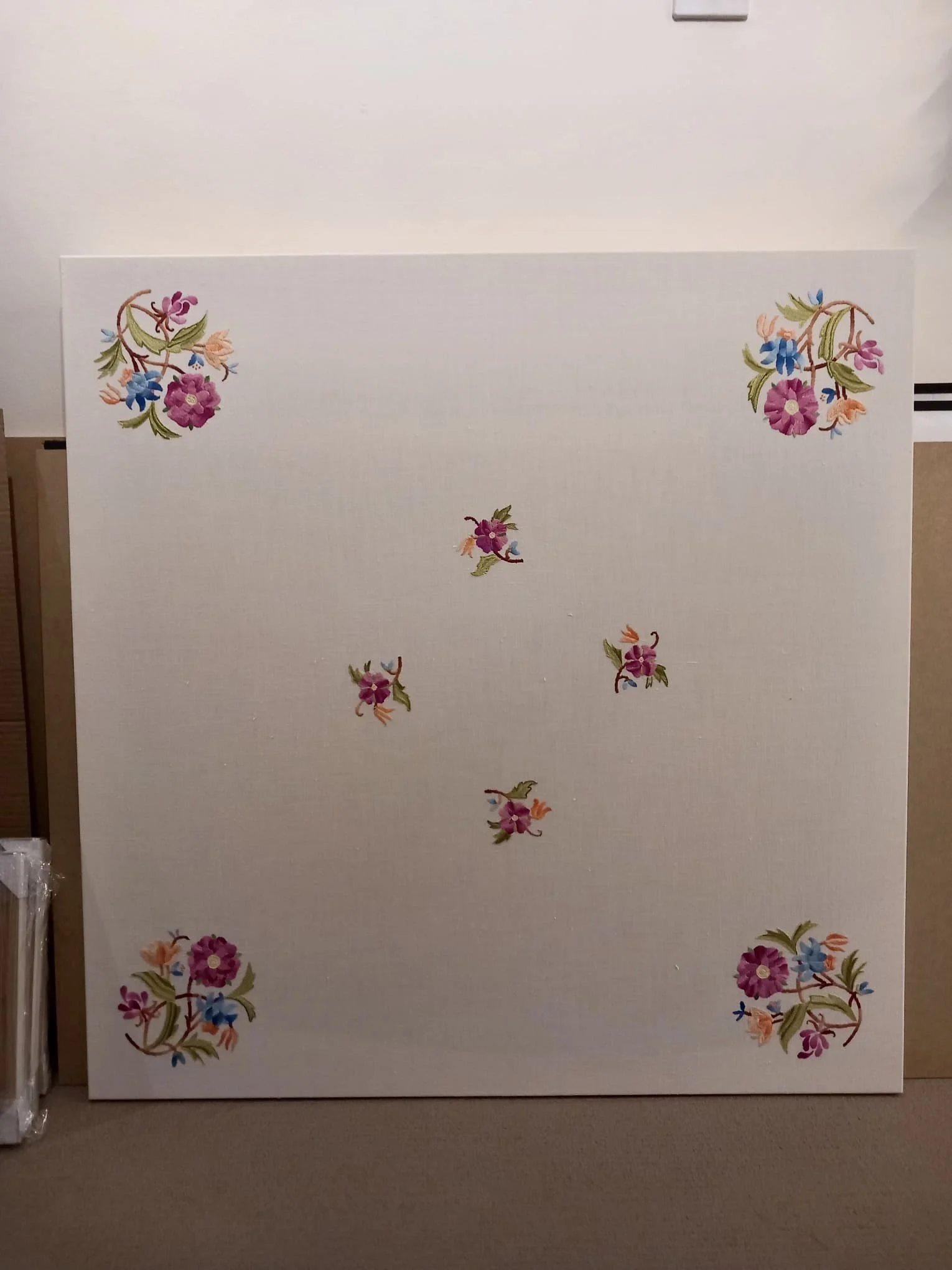 ORIGINAL AVAILABLE Original vintage embroidered tablecloth with 556 plant labels, 100 x 100cm.